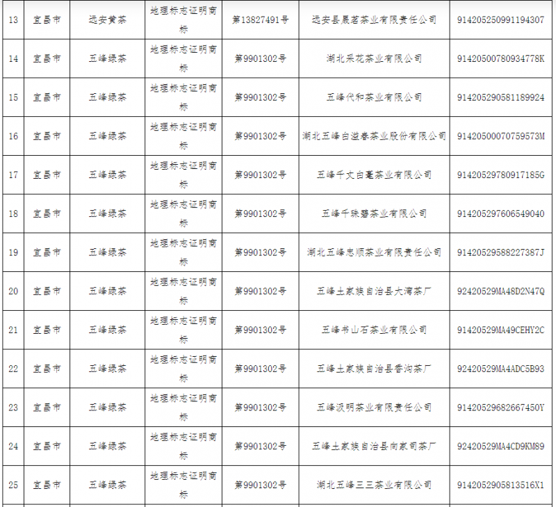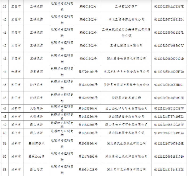 根據《地理標志專用標志使用管理辦法(試行)》和《國家知識產權局辦公室關于做好地理標志專用標志使用管理有關工作的通知》(國知辦函保字〔2020〕250號)有關規定,經國家知識產權局地理標志保護數據管理系統核驗,省知識產權局對我省符合地理標志專用標志使用要求的“湖北盤龍國瑞醫藥有限公司”等2家地理標志保護產品生產者和“武漢市蔡甸區萬順農產品專業合作社”等51家地理標志證明商標被許可人名單(見附件)予以公布,專用標志下載口令以紙質件形式統一下發至各市(州)知識產權局。