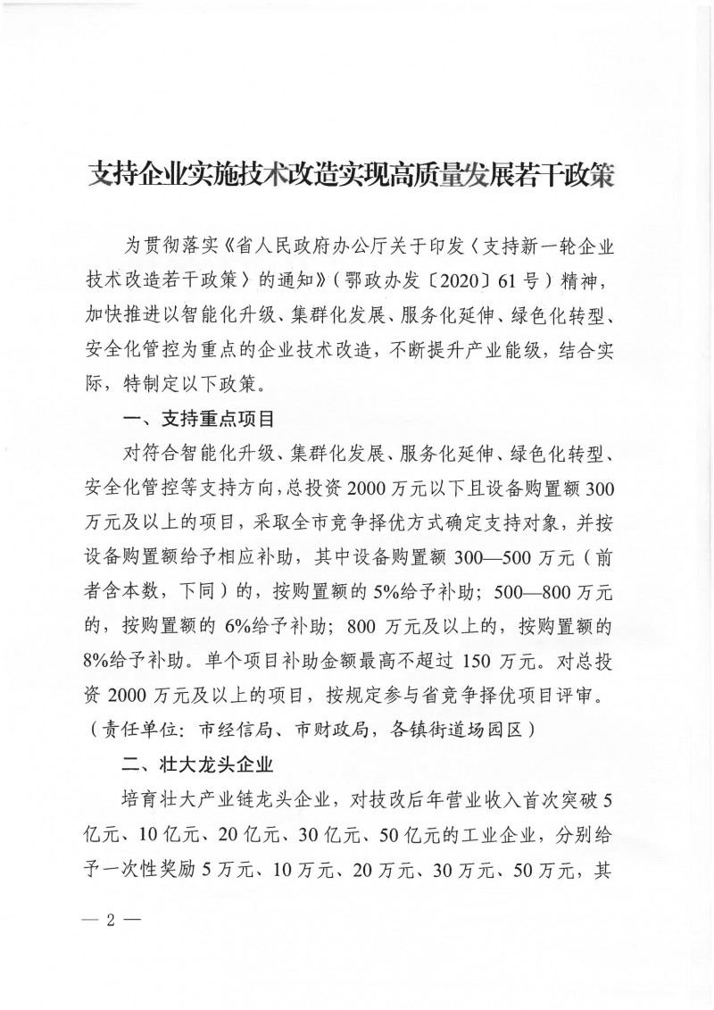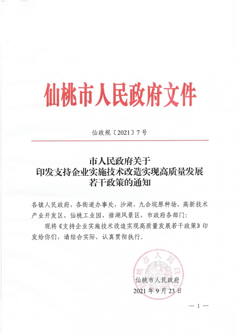 關于印發支持企業實施技術改造實現高質量發展若干政策的通知